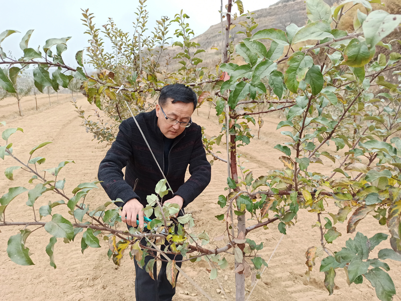 扶贫贵在精准,村文书曹文骞家中2015年种植5亩红富士果树每年消耗大量的人力物力财力精心护理至今没有任何效益,王建民得知此事后利用一切可以利用的空闲时间骑着电动车,来回往返30多华里去曹文骞家里进行果树修剪技术管理指导,他手把手的讲解枝条怎样修剪才能通风透光,怎样做才能形成结果枝组,他从栽培管理施肥修剪到果树的病虫害防治,逐一示范讲解,曹文骞高兴的说,没想到果树科学管理效果这样明显,今年的果树从树势到树形和枝条的生长量上都远远好于往年,希望来年有个好收成。曹文骞也高兴的写下了这样的打油诗句:
