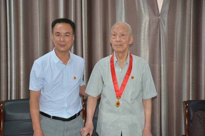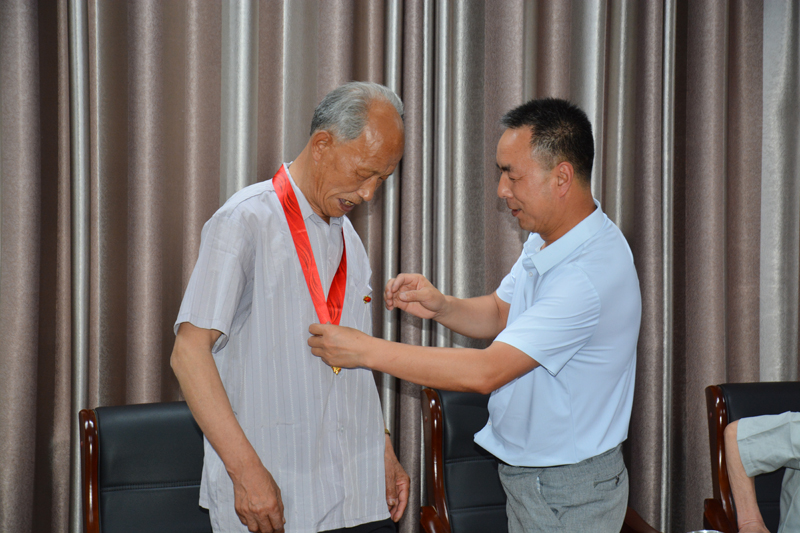 西峰局党组书记脱忠平为党龄50年以上的6名老党员代表颁发了“光荣在党50年”纪念章,并向他们表示崇高敬意和真切感谢。