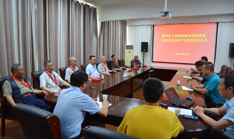 6月29日,西峰治理监督局举办“光荣在党50年”纪念章颁发仪式。局领导班子成员、党龄50年以上老党员代表、各党支部书记、青联主席参加了活动。