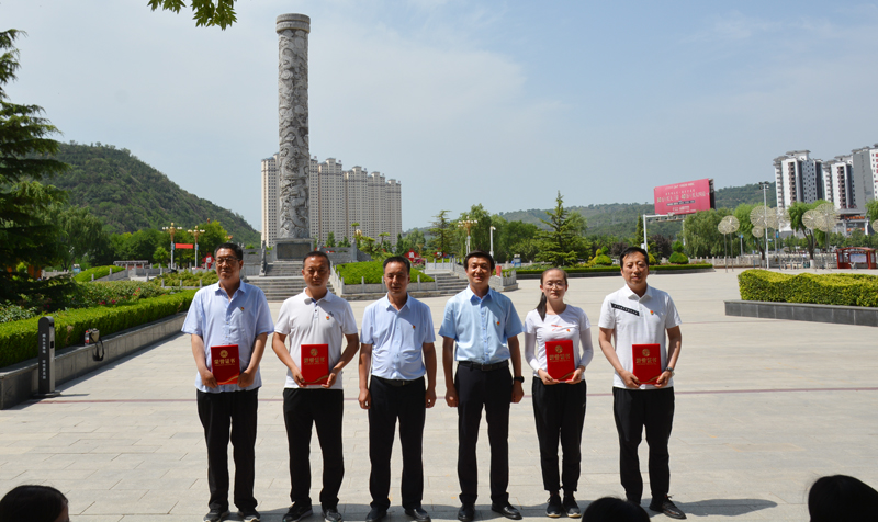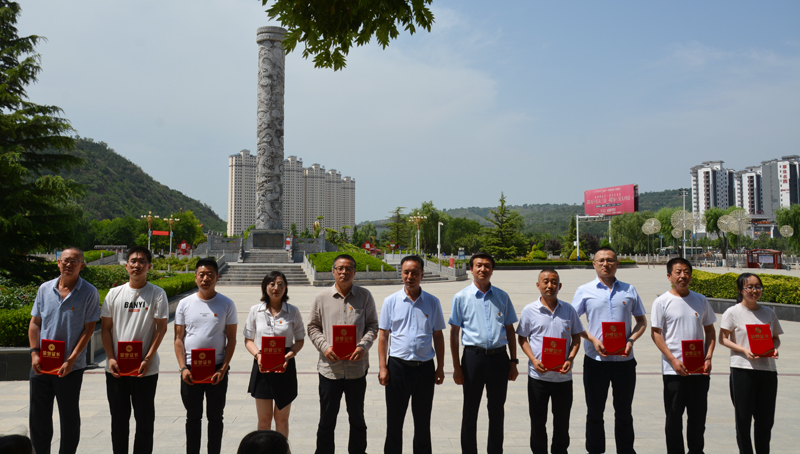 随后,全体党员职工向革命先辈敬献花篮,在王孝锡烈士陵园纪念碑下全体党员举起右手,庄严地重温入党誓词,铿锵有力的宣誓声激励着党员干部强党性、铭初心,让党员干部再一次体会到作为一名共产党员的责任感和使命感。接着,全体党员职工来到了烈士陵园广场前,开展了“两优一先”表彰活动,一起合唱了《没有共产党就没有新中国》和《团结就是力量》等歌曲,嘹亮的歌声唱出了黄河人积极向上的精神面貌,促进了凝心聚力、团结奋进,有力的传递了正能量。