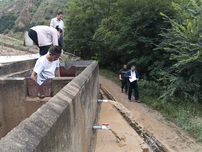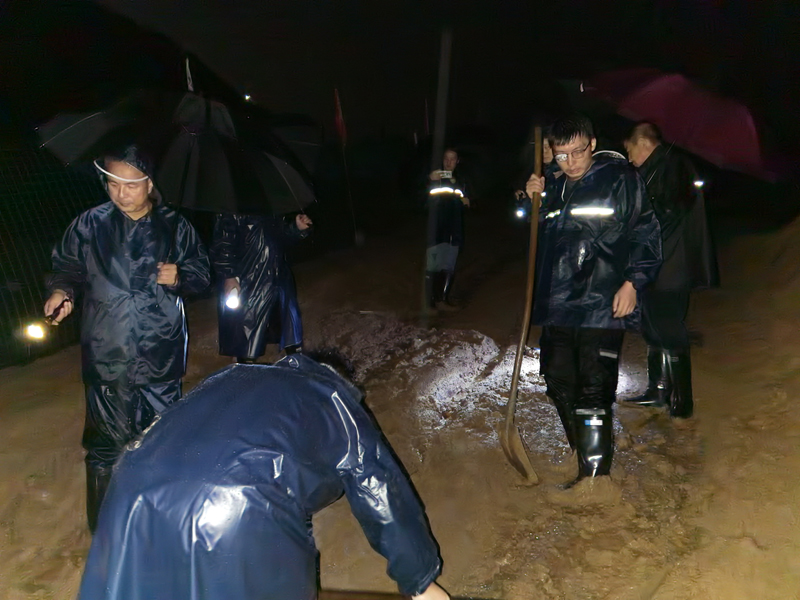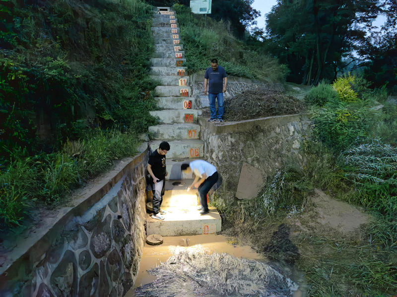 巡查组冒着暴雨、踩着泥泞、拿着铁锹、打着手电筒,对花果山水库、4座直管淤地坝、各测站及南小河沟主沟道排水渠进行一丝不苟巡查。
