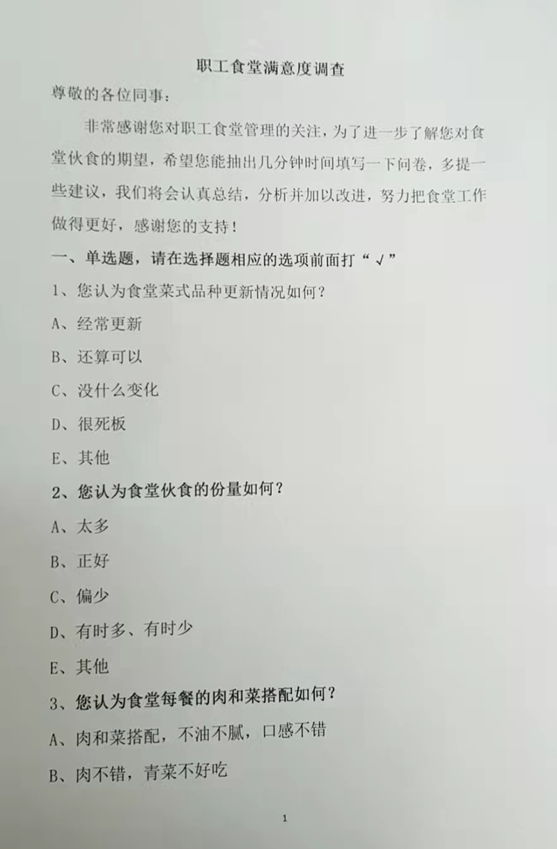 为进一步提升后勤服务水平,不断增强职工幸福感,2月18日,西峰局组织召开后勤服务工作交流会。会议调整了机关食堂管理委员会成员,与会人员参加了职工食堂满意度问卷调查,并就改进后勤服务工作、提高食堂供餐质量踊跃建言献策。