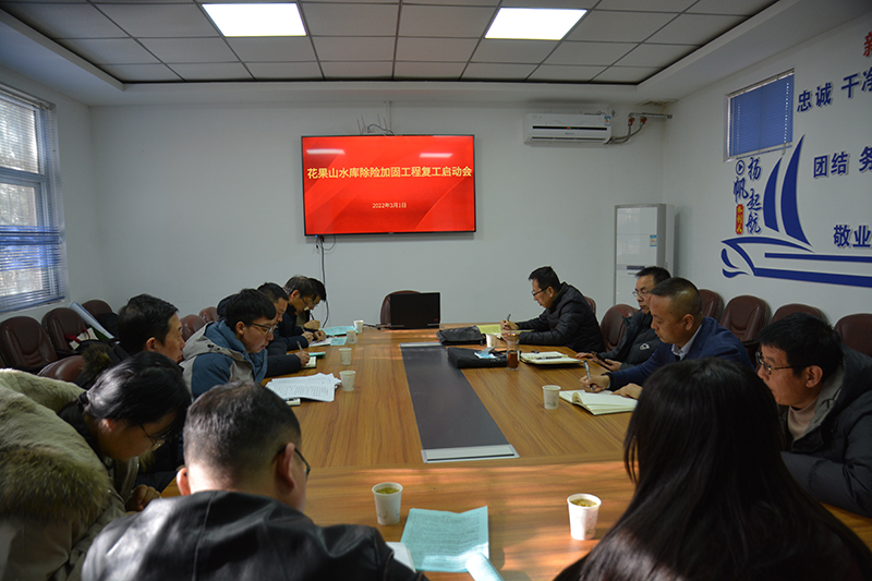 3月1日上午,西峰局组织召开花果山水库除险加固工程复工会,对2022年复工计划进行了安排部署。建设单位、监理单位、施工单位进一步统一思想,明确任务职责,梳理扫尾工程建设内容和时间节点,加快推进项目复工,确保汛前完成工程建设任务。