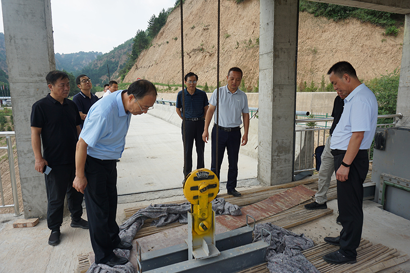 李典一行前往南小河沟试验场和机关办公区,现场检查了安全生产和业务工作开展情况。重点查看了花果山水库运行管理、进水塔架、消力池设备安全,详细了解了防汛值班值守及水土保持重点业务工作开展情况。在局机关和南小河沟试验场党员活动室,查阅了党建相关资料,询问了党建和“作风建设年”活动开展情况。