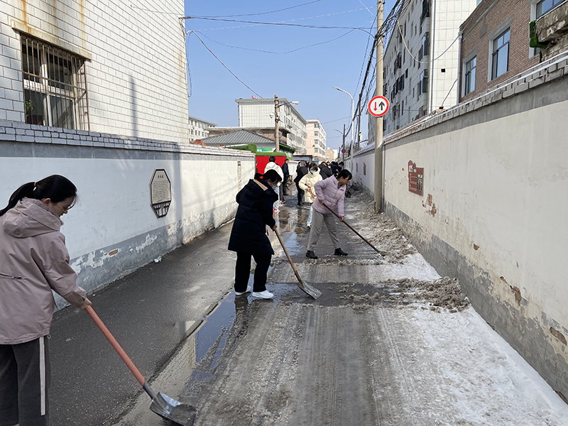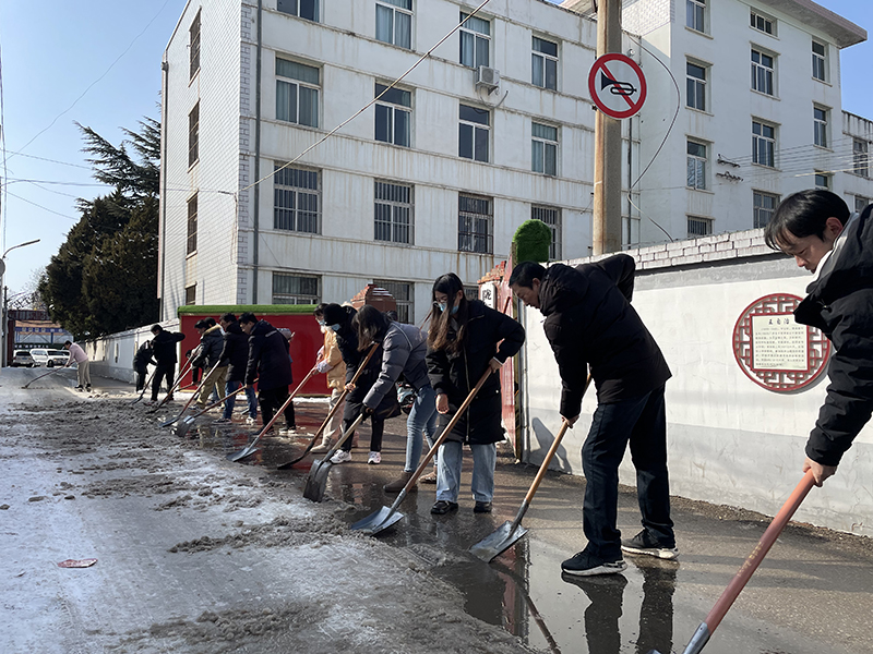 天气虽然寒冷,但大家干劲十足,清扫现场,大家手拿清雪工具,有的推、有的铲、有的扫,齐心协力、默契配合、分工有序,全身心投入到本次积雪清扫工作中。如火如荼的扫雪工作,形成了严寒冬日里一道靓丽、和谐的风景线。