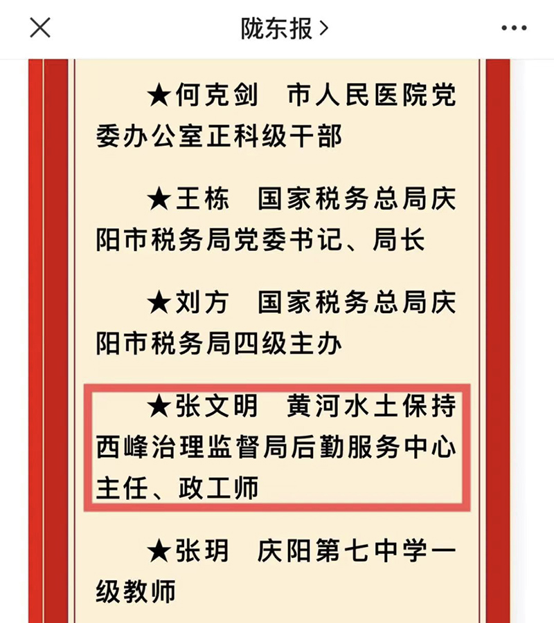近日,庆阳市通报表扬了一批“学习强国”学习平台推广使用工作先进学习组织和先进学习个人,我局后勤服务中心主任、政工师张文明荣获“先进学习个人”称号。