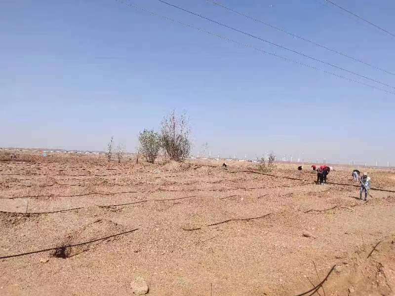 目前,该项目已经开始实施,完成了滴灌系统布设、造林及种草任务,其它工作也正有序进行。