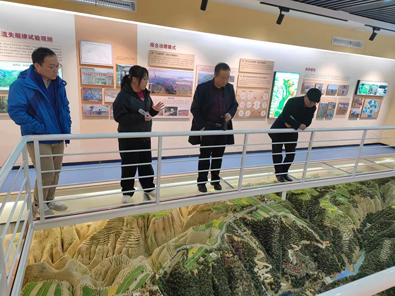 调研组深入南小河沟科技示范园,了解了西峰局的发展历程、开展的主要业务工作和水土流失综合治理工作成效等情况,实地参观了西峰黄河文化展馆及示范园综合治理成效,并主要就小流域监测站点的设施设备及观测情况进行了实地察看。