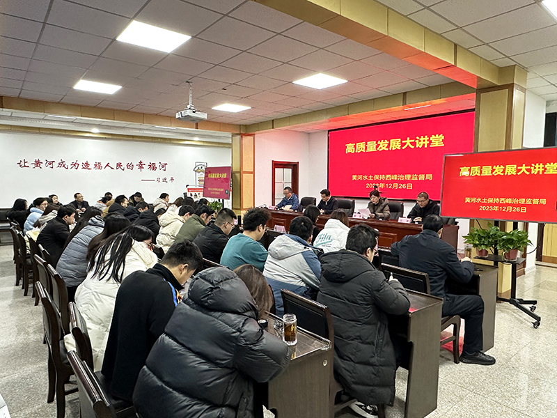 为全面落实《黄河流域生态保护和高质量发展规划纲要》和《关于加强新时代水土保持工作的意见》要求,对标新时期黄河保护治理和水土保持高质量发展需求,强化科技引领,发挥优势,拓展合作,推进构建上中游管理局“1+3+X”科技创新格局,西峰局以“高质量发展大讲堂”的形式搭建起与高校、科研院所等合作共享交流平台。2023年12月26日,西峰局邀请黄科院水保所正高级工程师、博士生导师张攀总工程师开展第二期“高质量发展大讲堂”学术讲座。西峰局局领导及科技人员参加了讲座。