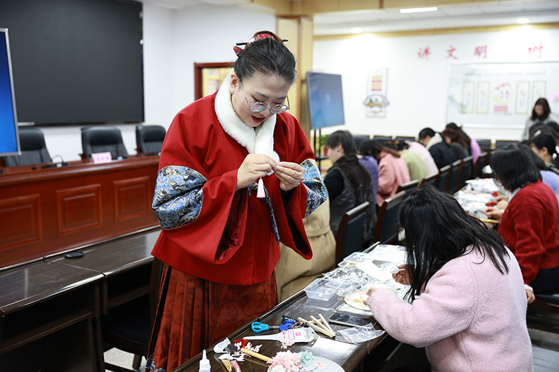 活动开始后,古朴典雅的团扇、多姿多彩的花朵枝叶立即吸引了女职工们的注意力,大家纷纷沉浸在设计、点缀、固型等创作中,用奇思妙想和灵巧的双手,精心制作出一把把高雅美丽、赏心悦目、独具风格的团扇,体验了手工制作的乐趣,感受了传统文化的魅力。