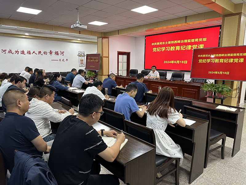 6月18日,西峰局党组书记、局长张西宁以“加强党纪学习教育,认真履行主责主业,为推动西峰局高质量发展汇聚强大合力”为题,为全体党员干部讲授纪律党课。全局党员参加。