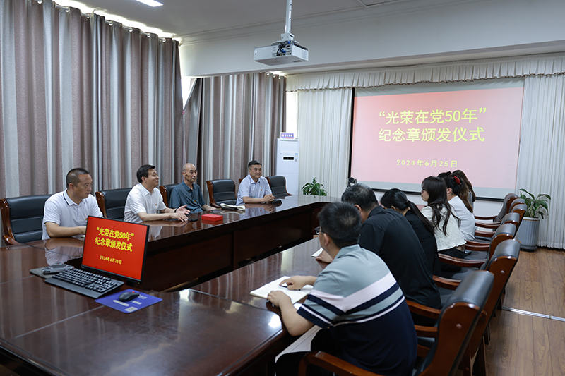 五十载峥嵘岁月,五十载初心如磐。为庆祝中国共产党成立103周年,进一步增强党员的荣誉感、归属感、使命感,6月25日,西峰局举行2024年“光荣在党50年”纪念章颁发仪式。局领导为获得2024年“光荣在党50年”纪念章的同志颁发纪念章。