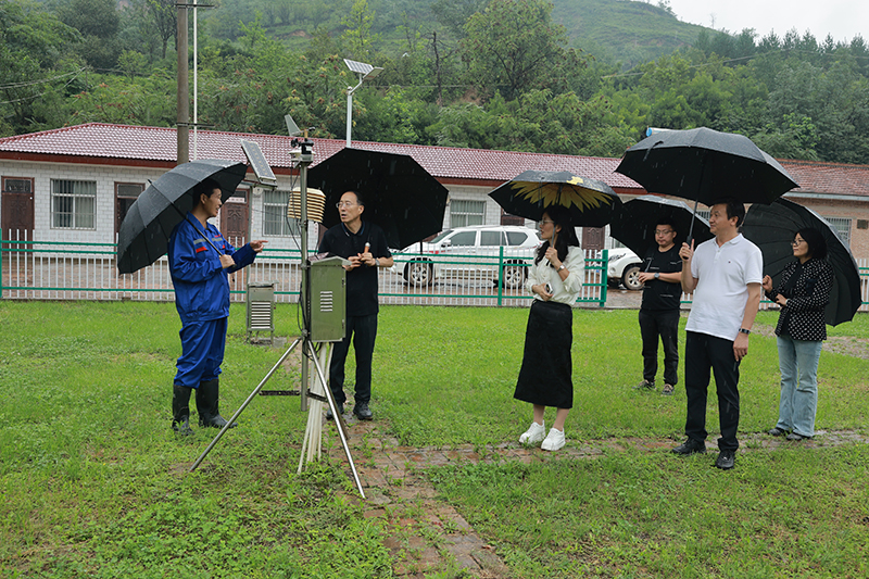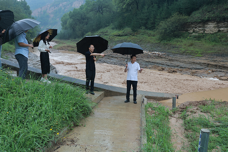 李典一行冒雨深入砚瓦川测站及董志试验场等地,实地调研水土流失规律试验观测、野外台站运行、沙棘示范基地建设、基层试验场管理及维护、防汛及基层党建等工作情况。