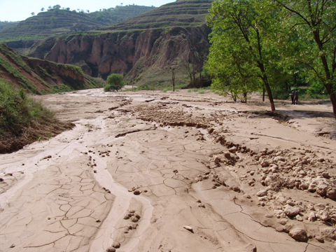 下泻的泥砂进入南小河沟主沟道
