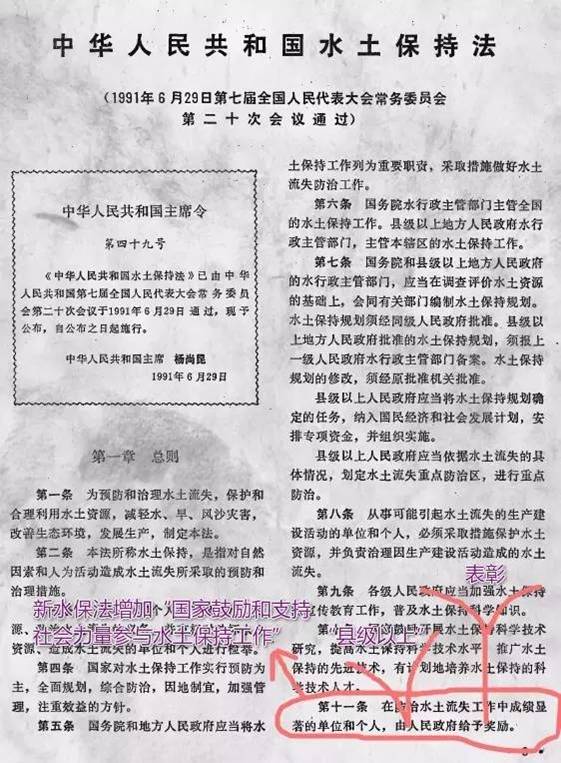【法条释义九】《水土保持法》第九条:鼓励和支持社会力量参与水土保持工作及表彰奖励