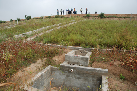 考察“模型黄土高原”野外人工模拟降雨试验装置
