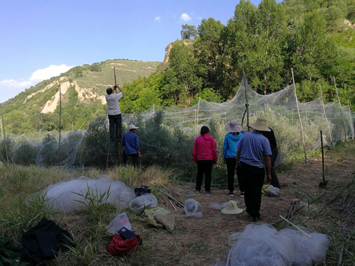 (4)对挂果的9个沙棘品种用遮鸟网进行遮挡,防止鸟虫及冰雹的危害。