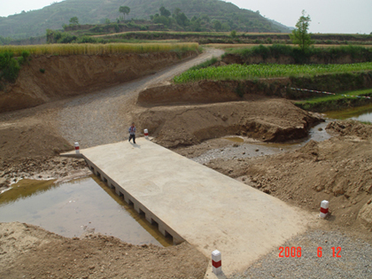 吴家川生产桥工程长度12.8米,宽度为4米,由桥体、桥台、效能护坦三部分组成,桥体设计承受荷载5.4吨。该工程于2008年4月17日破土动工,6月5日正式建成。