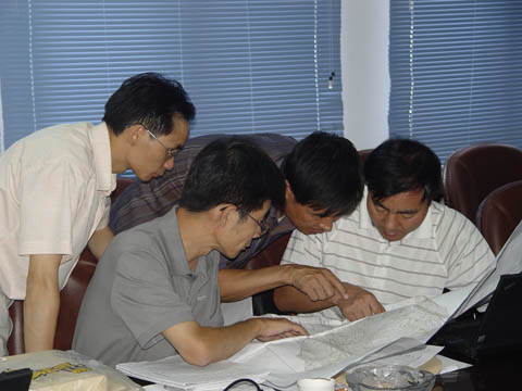 在13日召开的座谈会上,项目负责人及各调查小组组长详细汇报了第一阶段的工作情况和外业工作中遇到的困难和问题。喻主任在听取汇报后,首先对项目第一阶段工作所取得的成绩给予了充分肯定,并要求大家再接再厉,克服困难,确保工作任务的全面完成。喻主任一行还就有关技术问题与大家进行充分的沟通和交流。会上,他们查看了外业收集的文字、图表、照片等资料,重点检查了各调查组的外业调绘图。同时,针对下阶段的工作,他要求项目组加强对水土保持重点区的调查力度,及时沟通,解决项目开展过程中出现的各种问题。
