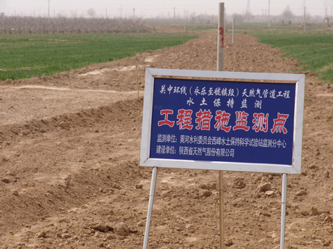 该工程区属陕西省划分的水土流失重点预防保护区和重点治理区。由于管道穿越河流、冲沟1800m/12次;穿越水渠160m/8次;穿越高速公路60m/1次;穿越省道、国道150m/5次;穿越县级、干线公路375m/25次;穿越铁路135m/3次。工程总占地308.72hm2,其中永久占地1.65hm2,临时占地(作业带)307.07hm2。因此,项目建设过程中对周边的生态环境影响较大,水土保持工作任务繁重。为了切实做好水土保持监测和技术评估工作,确保项目区因工程建设而产生的新增水土流失得到有效治理,生态环境得到保护,黄河水利委员会西峰水土保持科学试验站抽调了一批业务精、能力强的水土保持监测、技术评估工程师,及时进入施工现场。目前,已经完成了水土保持监测方案、技术评估细则、监测点的布设、阶段性现场调查和观测工作。在各参建单位的大力支持下,水土保持监测、技术评估工作在有条不紊的开展。