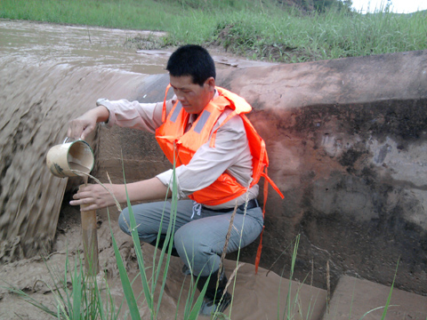 7月7日至15日,西峰地区普降大雨,使砚瓦川流域径流量和泥沙量剧增,降水量高达103.1mm,连续3次涨水,7月9日早晨8时水位达到1.30m,是2000年以来观测的最高水位。该次洪峰历时48小时,持续观测水位50次,取沙样35个。