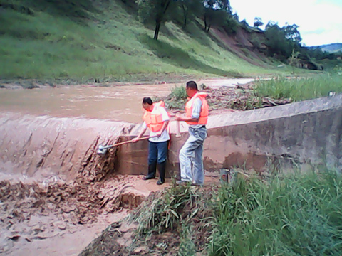 砚瓦川流域继7月7日强降雨后再现强降雨,21日至22日,每小时最大降雨量20mm,降雨持续13小时,降雨量113mm。强降雨使砚瓦川流域径流量和泥沙量剧增,测站出现最大洪峰,水位高达1.43m,最大流量16.2m3/s,最大含沙量875.76kg/m3,洪峰历时52小时,数据不断刷新近10年来历史记录,测站观测人员持续观测水位59次,取沙样44个,为径流泥沙观测取得了第一手基础资料。