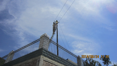 砚瓦川径流泥沙测站实施危房改建及配套工程时,拆除了观测房原来旧的农用供电线路,重新架设了30KVA的专用变压器及新的供电线路,8月下旬完成了观测房及量水堰的供电线路架设,同时在观测道路和量水堰旁安装了大功率的照明射灯。