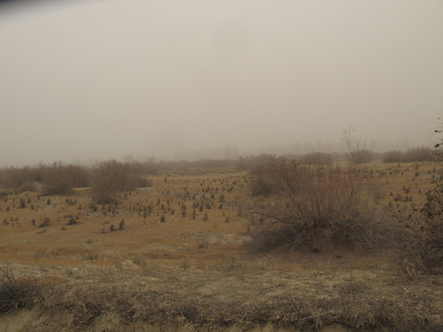 项目专题组3人于11月3日至11月20日,历时18天,克服了天气寒冷、沙尘暴袭击等多种困难,开展了项目所在地张掖市高台县、酒泉市金塔县的影像解译图斑的野外验证工作,收集了项目区2015降雨资料和水土保持基本概况等资料。