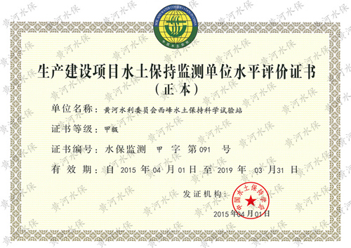 经甘肃省水土保持学会核实、中国水土保持学会审核,近日,西峰站取得中国水土保持学会颁发的《生产建设项目水土保持监测单位水平评价证书(甲级)》,西峰站水土保持监测单位水平评价证书延续申请工作顺利完成。