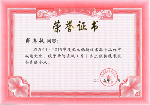 近日,我局薛志敏同志被黄河水利委员会授予“黄河流域(片)水土保持技术服务先进个人”,对今后我局水土保持技术服务水平的提高具有重要意义。