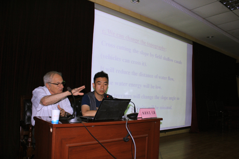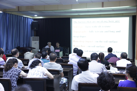 尤若博士用多媒体介绍了以色列水土流失概况、认为以色列的黄土地貌与我国的黄土高原地貌类型非常相似,有许多水土保持技术和节水灌溉技术可以在我国的黄土高原地区推广施行。尢若博士还谈了他对当地水土保持的印象,提出了10多条治理方面的有效建议。