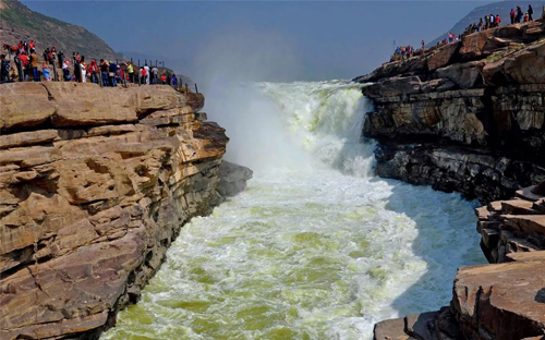 2016年4月下旬至5月上旬,受上游降水偏少和黄河干流来水量减少影响,河水流速变缓,泥沙沉淀,位于山西吉县和陕西宜川县交界的壶口瀑布水色明显变清,呈现出有别于往常的“清流飞瀑”景观。图/新华