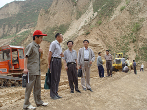 图为职工代表在水土保持治沟骨干工程施工现场巡察