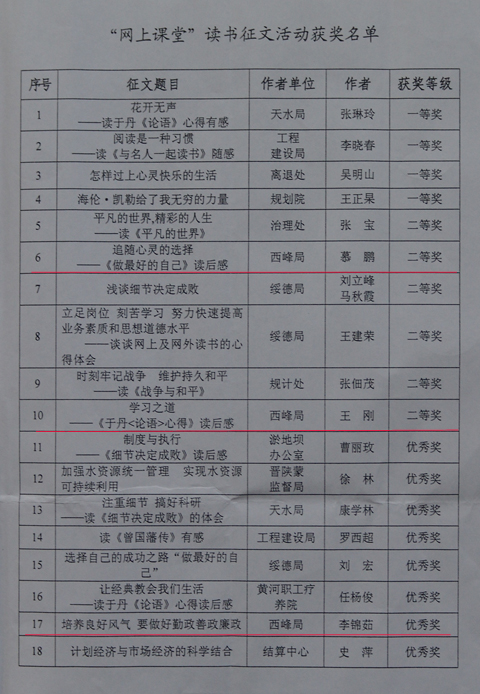 我局职工在“网上课堂”读书征文活动评选中榜上有名