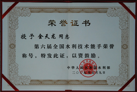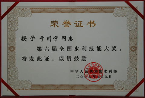 12月13日—16日,水利部在北京举办的“全国水利行业高技能人才进修班暨第六届全国水利行业技能人才表彰颁奖大会”上,我局职工于川宁同志荣获全国水利技能大奖,同时被授予全国农林水利产(行)业劳动奖章,金天龙同志荣获全国水利技术能手。