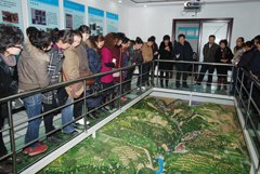 午饭后,稍事休息,大家又兴致勃勃参观了“南小河沟水土保持科技展馆”及布设在沟道和坡面的科学实验基地和设施工程,聆听了南小河沟试验监测站负责人对该站建站近六十年来的成果介绍;游览了下马山百亩果园、观景台、花果山水库、沟道鱼池、魏家台油松林、塔山沟华山松林、长青山侧柏林、十八亩台陇东第一坝等景点。