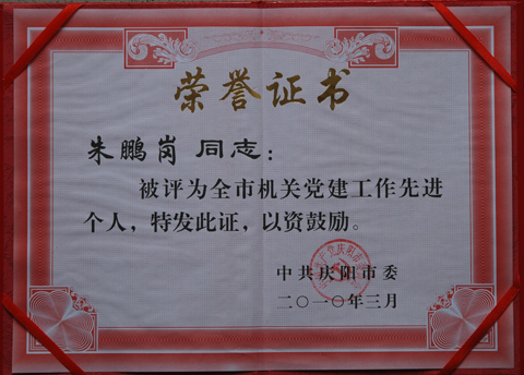 从3月16日召开的庆阳市机关党建工作会议获悉,我局朱鹏岗同志荣获市委“党建工作先进个人”荣誉称号,张西宁同志荣获“优秀共产党员”、方振杰同志荣获“优秀党务工作者”、张晓红同志荣获“优秀信息员”荣誉称号。四同志分别受到市委、市直机关工委的表彰奖励。