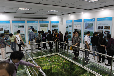 为了让家属们了解南小河沟的变化,局里专门安排了专业技术人员全程陪同现场讲解南小河沟流域治理历程、水土流失原型观测、水土保持生态工程建设和经过半个多世纪的治理,水土保持生态环境建设成效显著等基本情况。家属们来到南小河沟,登上藂翠亭观看南小河沟全景,接着又乐悠悠的坐着小汽艇一览花果山水库的秀丽景色和壮丽画卷,最后来到了杨家沟径流泥沙监测站、“陇东第一坝”和南小河沟水土保持科技展馆等地。他们看的高兴,听的明白,玩的尽兴,为自己的亲人能够在水土保持战线工作而感到自豪,也从中体会到,有了家人的辛勤付出,才有今天引以为豪和充满活力和希望的南小河沟。
