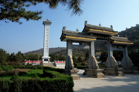 首先映入眼帘的是纪念馆大门,大门一侧是由陈云同志题书的“南梁革命纪念馆”馆名,大门里正对面是一座高大的仿古牌坊,牌坊正中刻着中共中央原总书记胡耀邦同志题写的“南梁革命纪念馆”七个大字。进入院内,高达34.117米的革命英雄纪念碑矗立在庭院正中,四周遍布苍松翠柏,纪念碑正面镌刻着由胡耀邦同志题词“革命烈士永垂不朽”的碑文,它的高度是为了纪念陕甘边区苏维埃政府成立于1934年11月7日。登上台阶,“刘志丹、谢子长……”碑座上镌刻着为创建和保卫陕甘革命根据地而牺牲的608位烈士的名字一一映入眼中,我们仿佛看到革命烈士从硝烟弥漫的战火中走来,向后人讲述当年壮烈的战斗历程。我们站在纪念碑下默默的沉思,静静的送去对革命先烈及无名英雄们的缅怀和敬意。