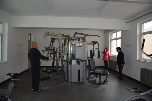查看机关职工健身房设施