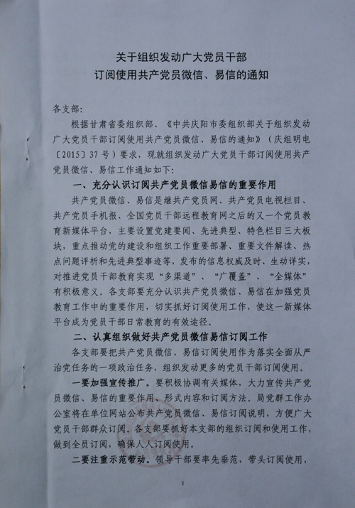 关于组织发动广大党员干部订阅使用共产党员微信、易信的通知