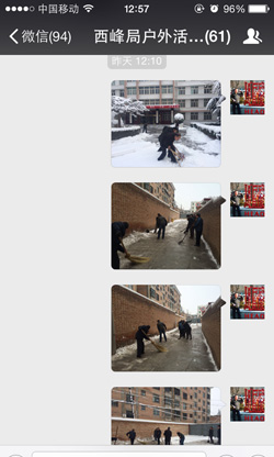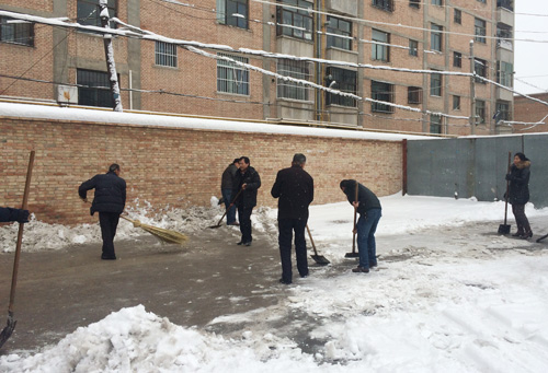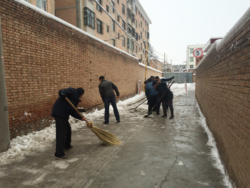 不一会儿,家属院内聚集了数十人,拿铁锨的、拿扫帚的自动进入清扫院内道路的模式。期间也有不少在职、离退休职工及家属积极加入。