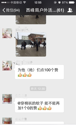 在随后的微信群里,也贴出大量的刷赞贴:“满满的正能量”,“向他们致敬”,“为他(她)们点赞”。