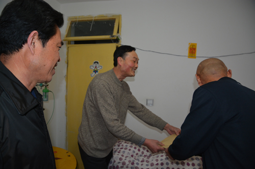 慰问组成员看望了离退休职工王心荣、刘岱同志,详细了解退休老同志的生活状况。走访困难职工王俊清、林震同志的家庭,了解他们的实际困难,为他们送去了慰问金,并鼓励他们树立信心、渡过难关,让他们在寒冬中感受到组织的关怀和温暖。