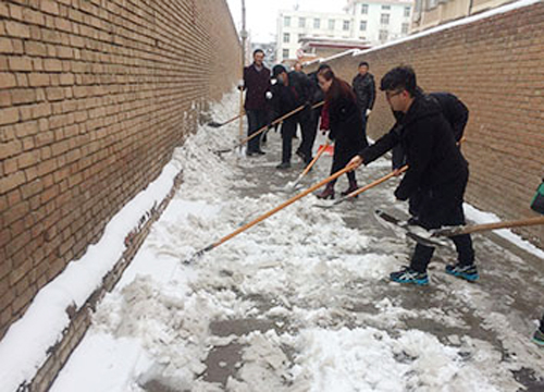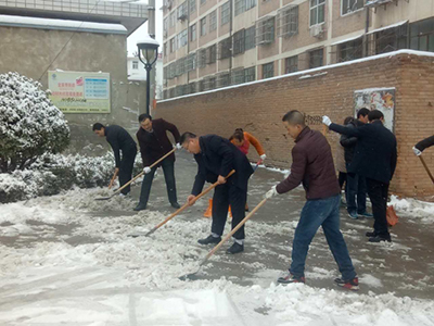 21日上班后,西峰局领导就组织机关职工,冒着纷纷扬扬的雪花一起清理路面和院落积雪。大家一起挥掀铲雪,团结协作。经过大家一个半小时的辛勤劳动,机关前后院和进家属区道路积雪全部铲除完毕,为职工和家属出行及家属区行车提供了安全保障。出进行人和车辆驾驶员纷纷向铲雪职工送上赞许的微笑。