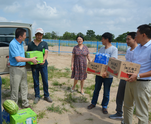 参加项目作业的西峰水土保持规划院副院长王向晖代表项目组感谢工会组织到现场慰问一线工作人员。表示将按照慰问组的要求和建议,调整工作时间,保证作业人员的人身安全,杜绝中暑现象,保质保量的完成外业资料的采集工作。