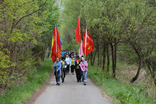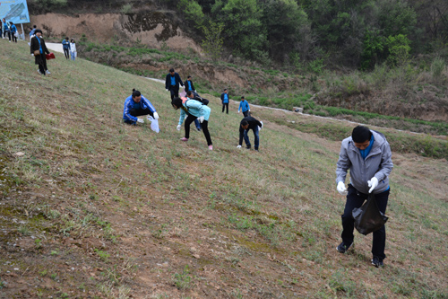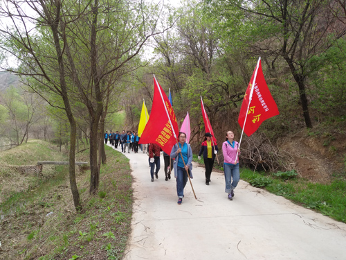 在花果山水库坝顶,旌旗迎风招展,大家精神饱满,热情洋溢。活动开始后,大家手提环保袋,沿着沟道一边走一边捡拾垃圾,连小小的烟头也不放过。大家欣赏着南小河沟的美景,老同志们谈论着过去的“故事”,年轻职工赞叹着南小河沟今日的风采,一路上欢声笑语,沐着春风健步前行。