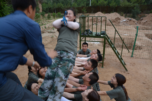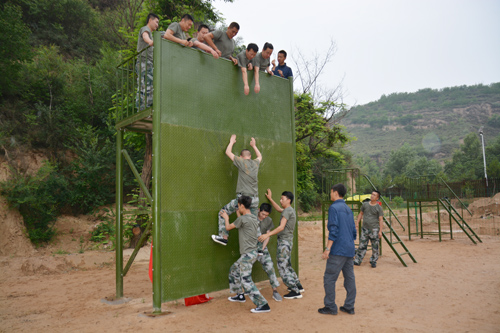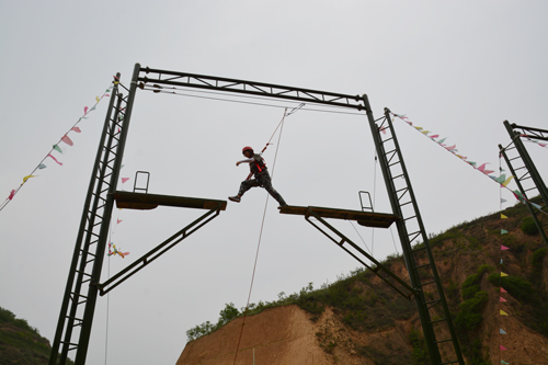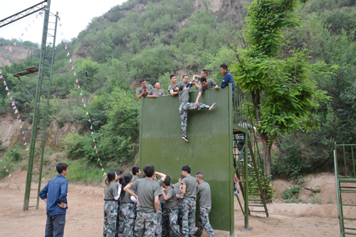 21日,绥德局青联与西峰局青联40余名青年职工,共赴辛店沟拓展基地,开展了为期一天的联合素质拓展训练。活动中,两局青年职工身着统一作训服装,混编为两组,先后进行了两个环节的拓展训练。第一环节以“团队建设”“团队展示”为主,在教官的指导下,队员们进行了队列动作等训练,开展了“教官说”、“目标市场”等小游戏。在团队建设和展示中,大家集思广益,编创了自己队伍的队名、队歌、队型,在展示完团队名称和队旗后,大声喊出团队口号,唱出各自的团队歌曲,活跃了团队的氛围,消除了两局青年之间的陌生感,提振了士气,为接下来的拓展训练奠定了基础。第二阶段以户外拓展为主,首先进行了“跨越高空断桥”,以实现“个人突破”为目标,增强自我控制与决断能力,克服心理压力树立挑战困难的自信心,不轻言放弃,培养积极进取的心态;接着进行“信任背摔”,以体现群体决策的方法和意义,大胆尝试,勇于付出,相互信任,团结协作,挑战未知领域,培养创新意识;最后进行了“毕业墙”,从团队利益出发,发扬奉献精神,主动承担责任,为了成功,个人利益必须服从整体利益,要发扬齐心协作,战胜困难的决心。户外拓展虽然在小雨中进行,但队员们热情高涨,齐心协作、相互帮助,高质量的完成了拓展科目训练,达到了拓展目标。