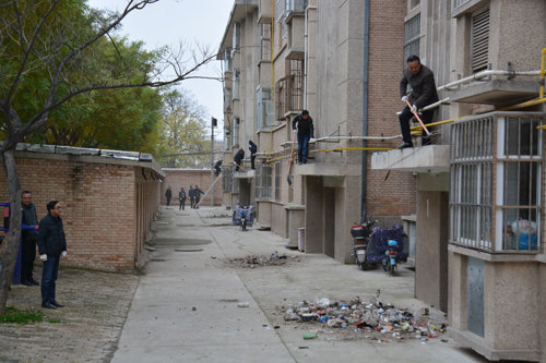 按照后勤服务中心的统一安排,各党支部对划分区域内的楼宇进户雨棚、煤房顶、楼房拐角等卫生死角,进行了彻底的打扫清理。