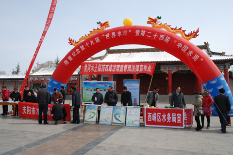 3月22日,黄河水土保持西峰治理监督局联合庆阳市水务局、市水政监察支队、黄委会水文水资源局、西峰区水务局、甘肃省庆阳水文水资源局等单位,在庆阳市西峰区东湖公园门前举行了第十九届“世界水日”和第二十四届“中国水周”宣传活动。
